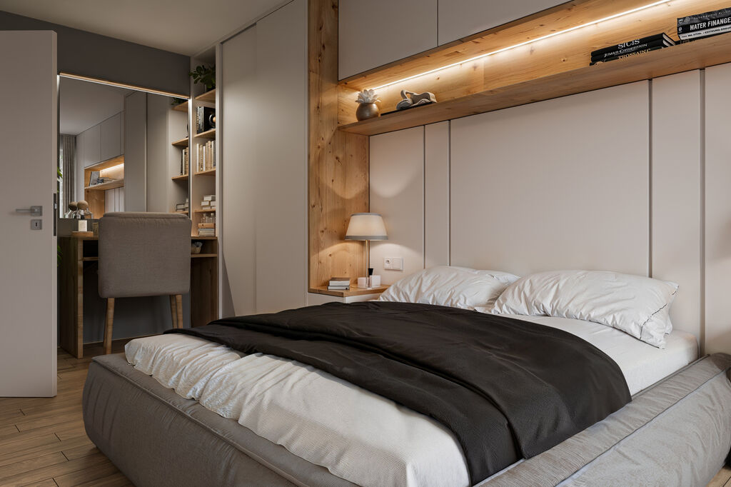 Bytové jednotky s dispozicí 3+kk nabídnou užitné plochy od 71 m2 až do 89 m2 (plochy bez balkonů a sklepů). Interiér je navržen s důrazem na světlost, praktičnost a celkový komfort bydlení. Mimo sklepní kóji má každý byt navíc lodžii, balkon nebo terasu od výměr 7 m2 do 31 m2. K bytům je možné dokoupit vlastní parkovací místo ať už v garáži, či venku.
