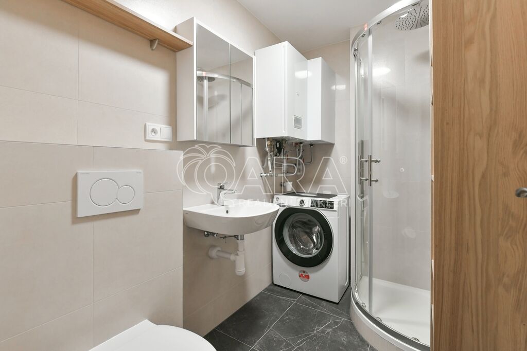 Byt je ve vysokém standartu, je vybaven kuchyňskou linkou se spotřebiči včetně lednice, v koupelně je k dispozici pračka, v kuchyňi jídelní stůl včetně židlí.