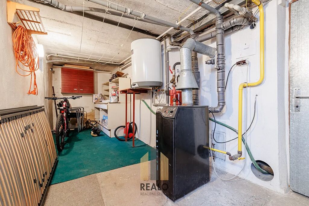 Součástí domu je sklep, garáž a technická místnost. Stavba je částečně podsklepená a nabízí možnost půdní vestavby či rozšíření obytné části podle představ nového majitele. Vytápění je řešeno plynovým kotlem, ohřev vody bojlerem.