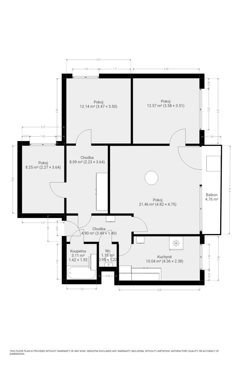 Byt se nabízí částečně vybavený dle fotografií. Chodba disponuje prostornou skříní s úložným prostorem. Kuchyně je zařízena sporákem, troubou, lednicí a digestoří Obývací pokoj je prostorný a světlý, nabízí dostatek místa pro vlastní vybavení. Další tři oddělené pokoje jsou prázdné a připravené k vybavení dle vlastních potřeb.