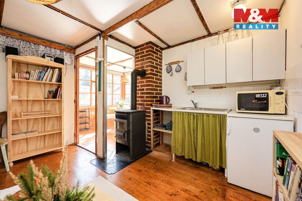 Ve výhradním zastoupení nabízíme k prodeji krásnou chatu s pozemkem Domašově nad Bystřicí. Tato montovaná a udržovaná chata o dispozici 2+kk je ideálním útočištěm pro milovníky přírody. Nachází se na okraji obce, obklopena zelení luk a lesů, na pozemku o rozloze 509 m². Užitná plocha chaty je 38 m² a sestává z prosklené verandy s jídelním koutem, obývací části s kuchyňským koutem a samostatné ložnice. Koupelna je vybavena vanou, umývadlem a WC. Komfort doplňuje menší terasa a dřevěná pergola v zahradě. Chata je napojena na obecní vodovod a elektřinu, vytápění zajišťují krbová kamna. Ohřev vody je elektrickým bojlerem. K dispozici je také kůlna na dřevo a nářadí. Dojezd k chatě je po zpevněné obecní komunikaci. S financováním vám rádi pomohou naši hypoteční specialisté. Zavolejte pro více informací a domluvte si prohlídku.