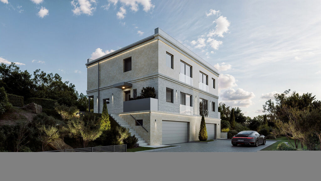 Nabízíme k prodeji nadstandardní novostavbu s dispozicí 5+kk, užitnou plochou 176 m², terasou 25 m² a soukromou zahradou o velikosti 297 m². Vila spojuje moderní architekturu s duší italského stylu. Fasáda z pravého travertinu, dovezeného přímo z Itálie, působí jako elegantní šperk celého domu, který dokonale doplňuje designové venkovní osvětlení fasády a okolí. Večerní iluminace zvýrazňuje architektonické linie, umocňuje atmosféru celého prostoru a dodává vile výjimečný charakter. Luxusní materiály, dokonalé detaily a promyšlené dispozice vytvářejí prostředí, kde se snoubí design, komfort a rodinná pohoda.