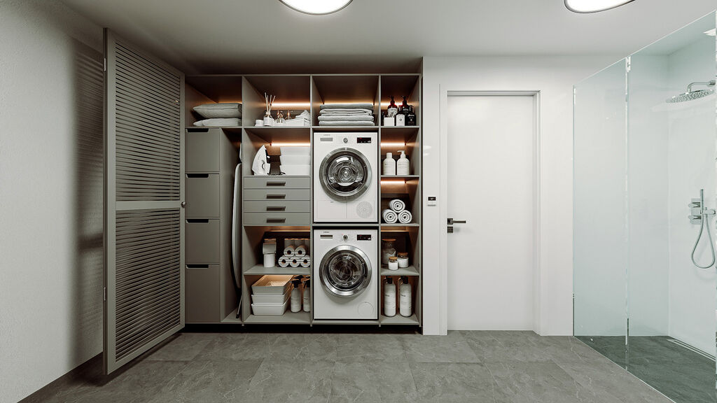 • Osvětlené podhledy a designové osvětlení v koupelnách a garáži