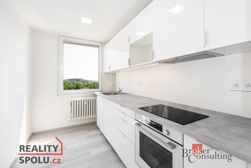 Byt je po kompletní rekonstrukci – byly použity kvalitní a nadstandardní materiály, jako jsou např. vinylové podlahy, bezfalcové interiérové dveře a sanitární zařízení. Nové jsou samozřejmě také veškeré rozvody vody a elektřiny. Součástí nájmu je vybavení bytu tak, jak je zachyceno na fotografiích, tedy plnohodnotná, ještě nikým nepoužitá kuchyňská linka s horkovzdušnou troubou a indukční varnou deskou. V předsíni bude ještě zhotovena vestavná skříň s úložnými prostory na míru.