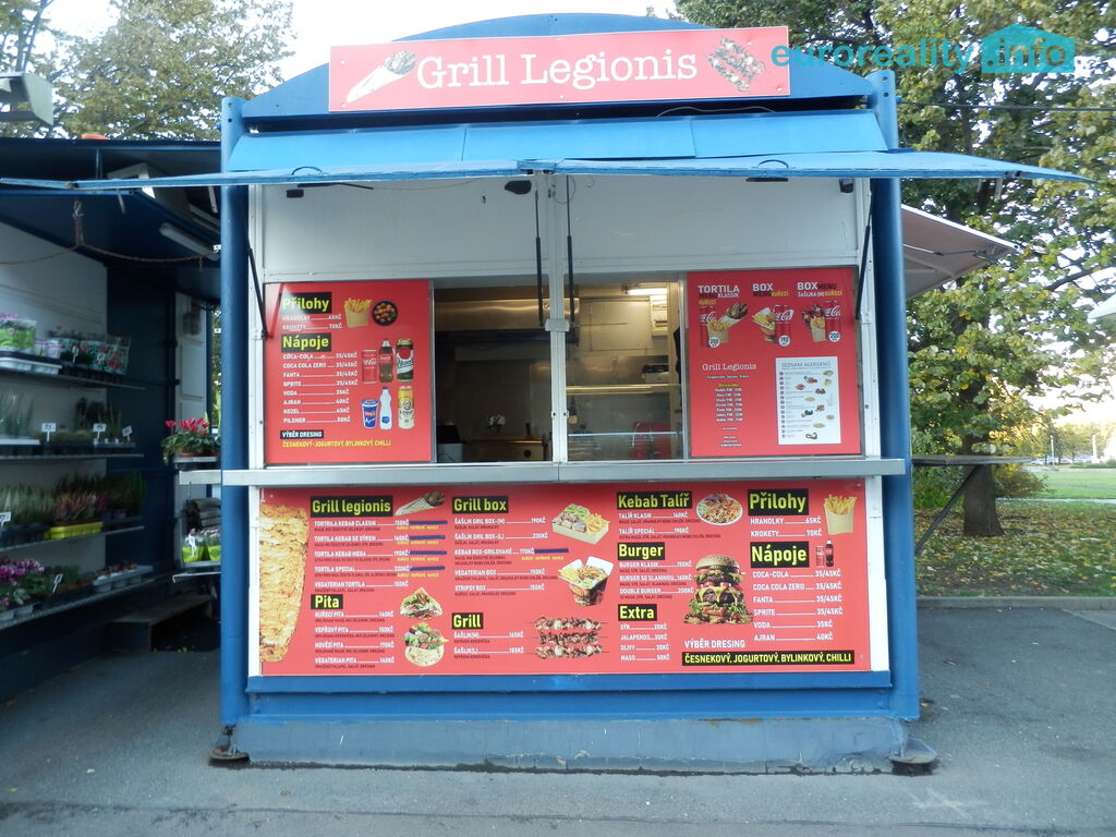 Stánek se k pronájmu nabízí částečně vybavený 2x lednicí, digestoří, nerez umývadlem s průtokovým ohřívačem vody, nerez stoly a policemi.