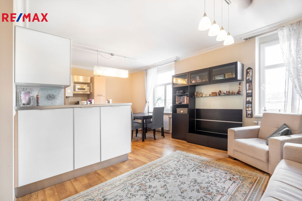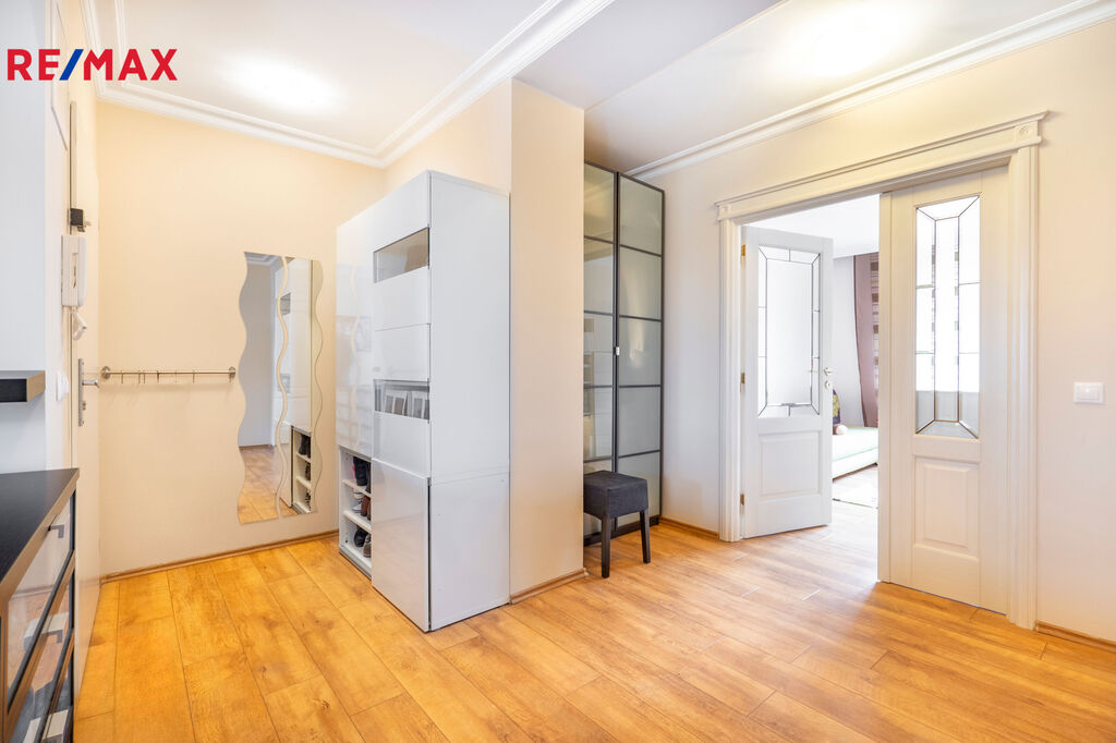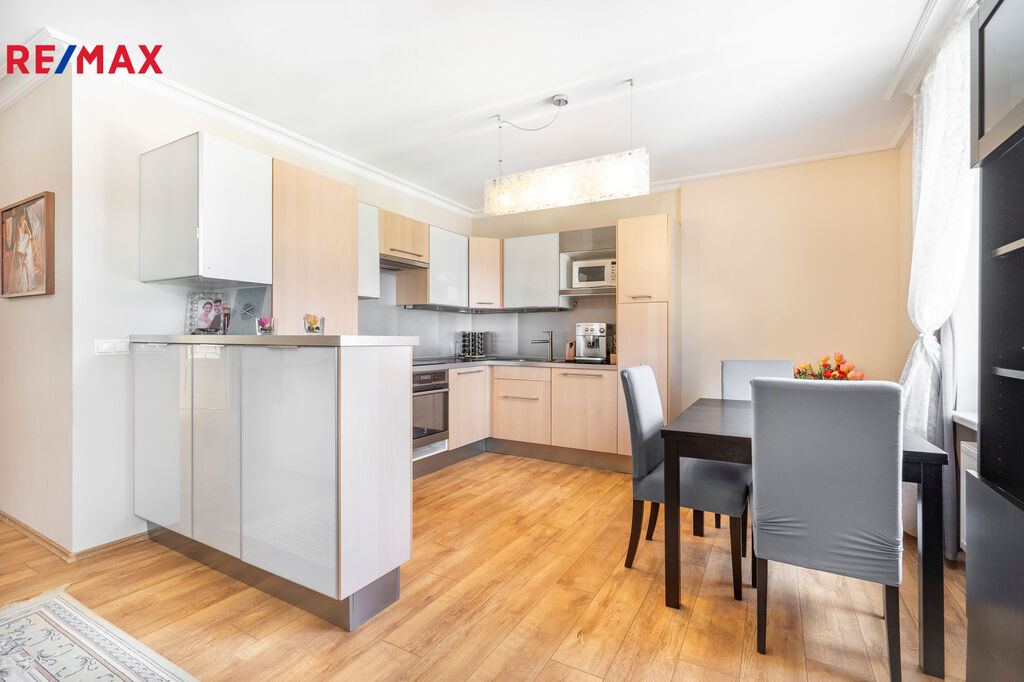 Byt má ideální polohu – v těsné blízkosti je autobusová zastávka, banka Komerční banka, podzemní parkoviště a množství obchodů, kaváren a restaurací.