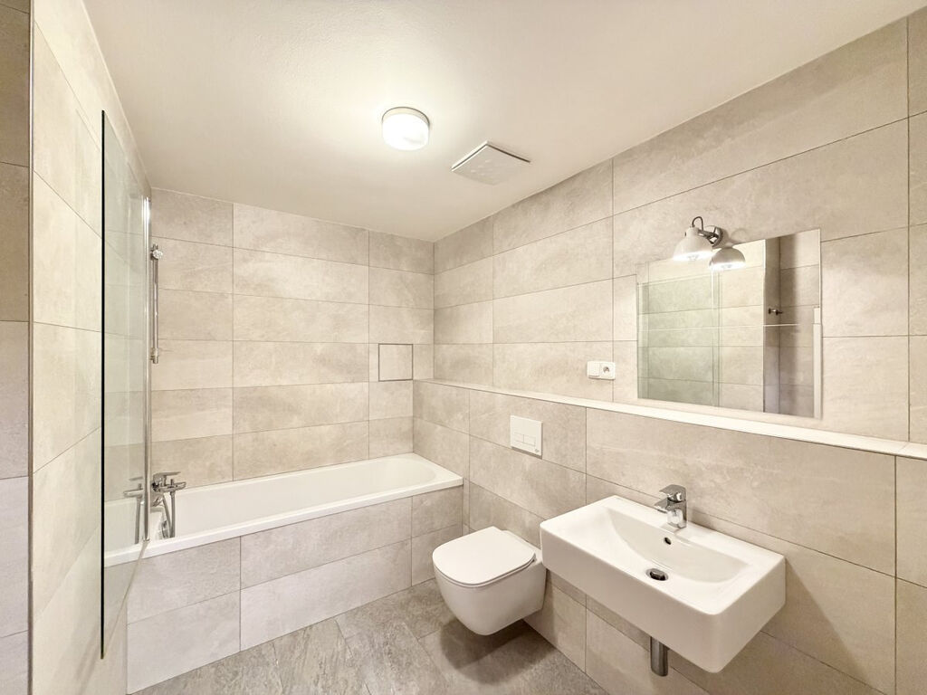 Byt se nabízí částečně vybavený. Kuchyň je vybavena lednicí, mrazákem, myčkou, elektrickou troubou, varnou deskou a digestoří. Obývací část i druhý pokoj jsou nezařízené. V předsíni se nachází prostorná vestavěná skříň. V koupelně je vana, umyvadlo, topný žebřík a toaleta. Druhá toaleta je umístěna samostatně.
