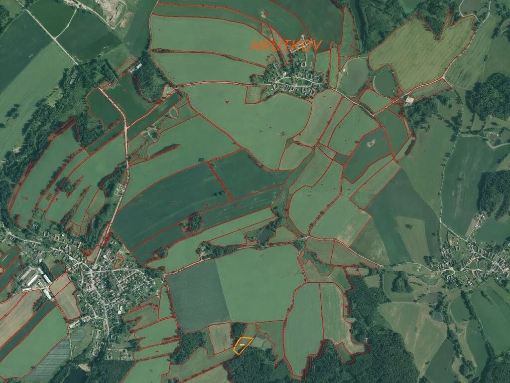 Předmětem dražby je pozemek o celkové výměře 7 435 m2 nedaleko obce Hrutkov. Dle
