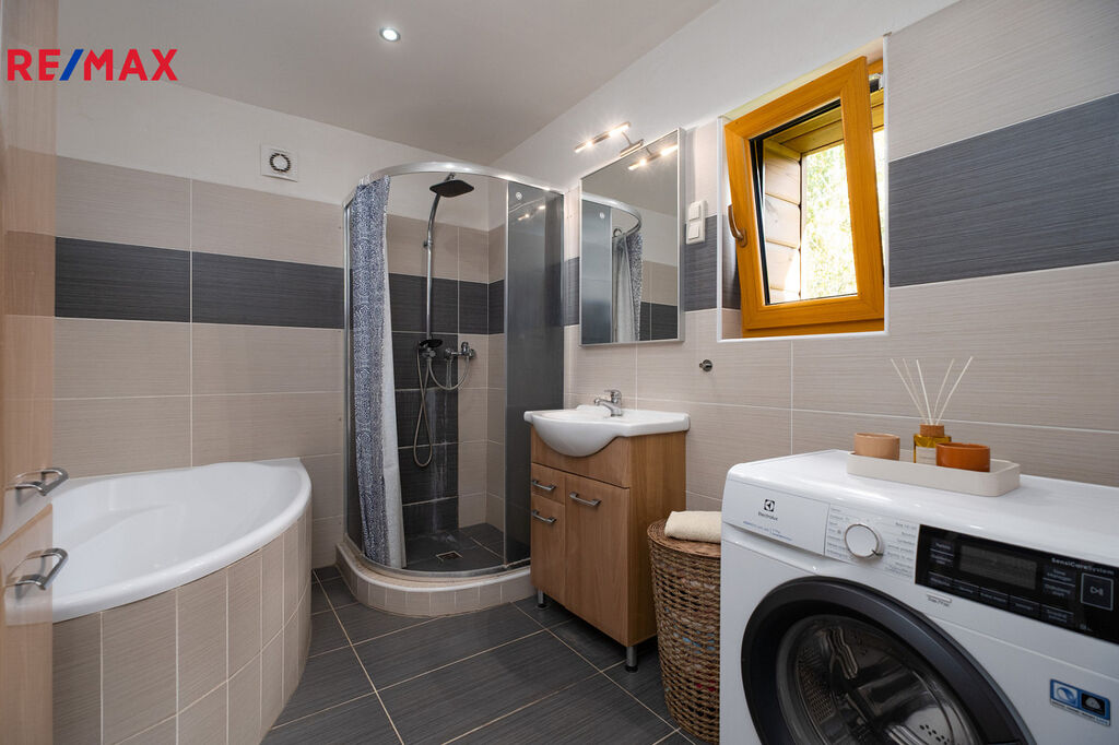 Na vrchním patře zatím není rekonstrukce dokončena, lze ji však snadno dokončit a tím rozšířit obytné prostory, případně patro využít například jako společenskou místnost.