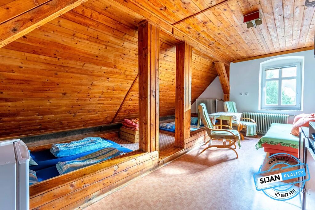 Součástí objektu je zmodernizovaný apartmán s vlastní kuchyňkou, koupelnou a teráskou se vstupem na zahradu.