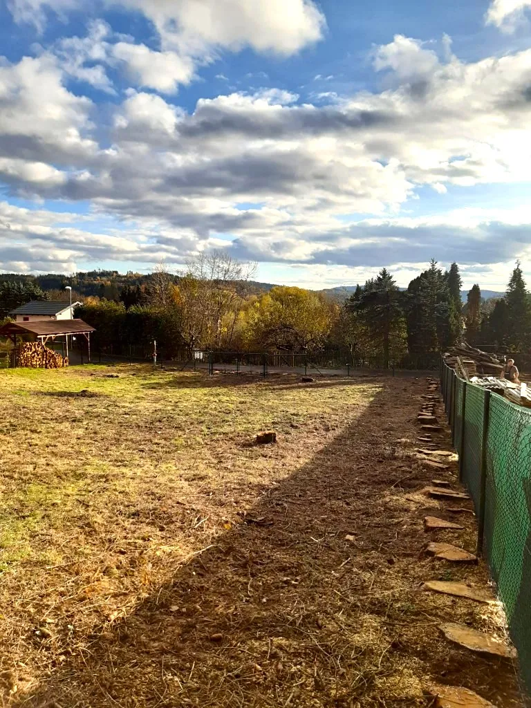 Pozemek je kompletně oplocený, vyčištěný od dřevin, na hranici se nachází vodovodní přípojka. Kanalizace v této časti obec není k dispozici a je třeba počítat se zbudováním čističky odpadních vod.