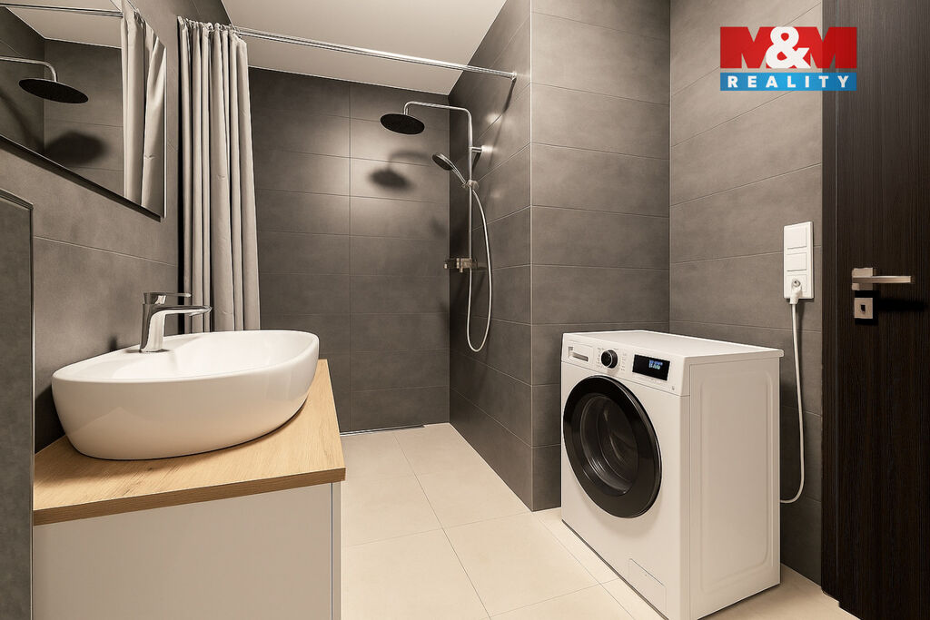 Byt nabízí další dva pokoje a jeden menší, ideální pro zřízení pracovny, dětského pokoje či ložnice. Koupelna, přístupná z vstupní chodby, disponuje velkým sprchovým koutem a toaletou.