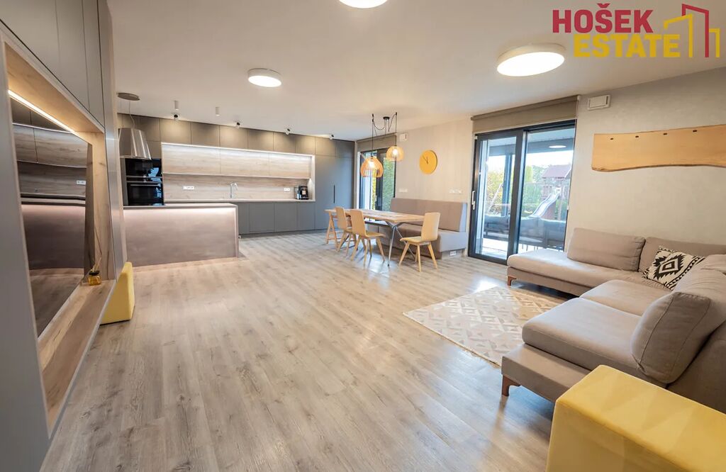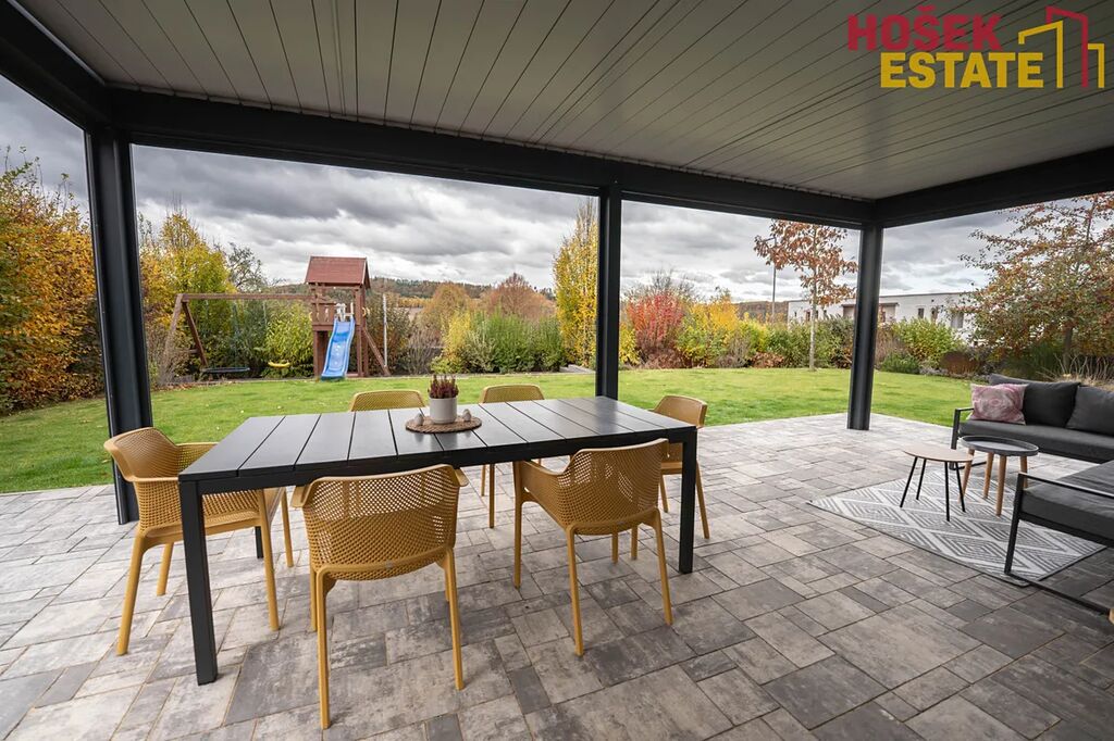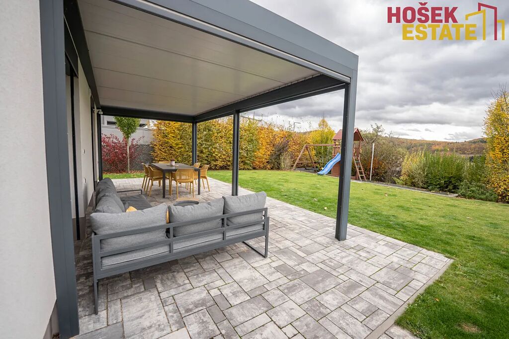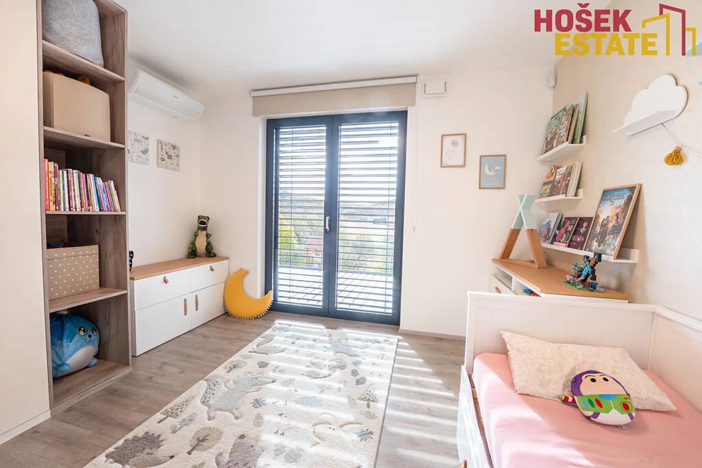 Novostavba je z roku 2019, což Vám zaručuje minimální starosti s údržbou a maximální pohodu pro rodiny. V domě se nachází prostorná a prakticky uspořádaná plně vybavená kvalitní kuchyň a prostorný moderní obývací prostor. Dále praktická technická místnost, kde je uložena pračka se sušičkou. Dětské pokoje jsou vybaveny dostatečným úložným prostorem pro všechny hračky a potřeby vašich ratolestí a také klimatizačními jednotkami. Prostorná ložnice má dokonce svou vlastní koupelnu, což jistě oceníte. Dalším plusem je krásná terasa v prvním patře, která přímo vybízí k domácímu wellness. Venkovní zahrada je hezky udržovaná a nabízí prostor pro hry, odpočinek a rodinné sešlosti pod kvalitní bioklimatickou podsvícenou pergolou se screeny po všech stranách.