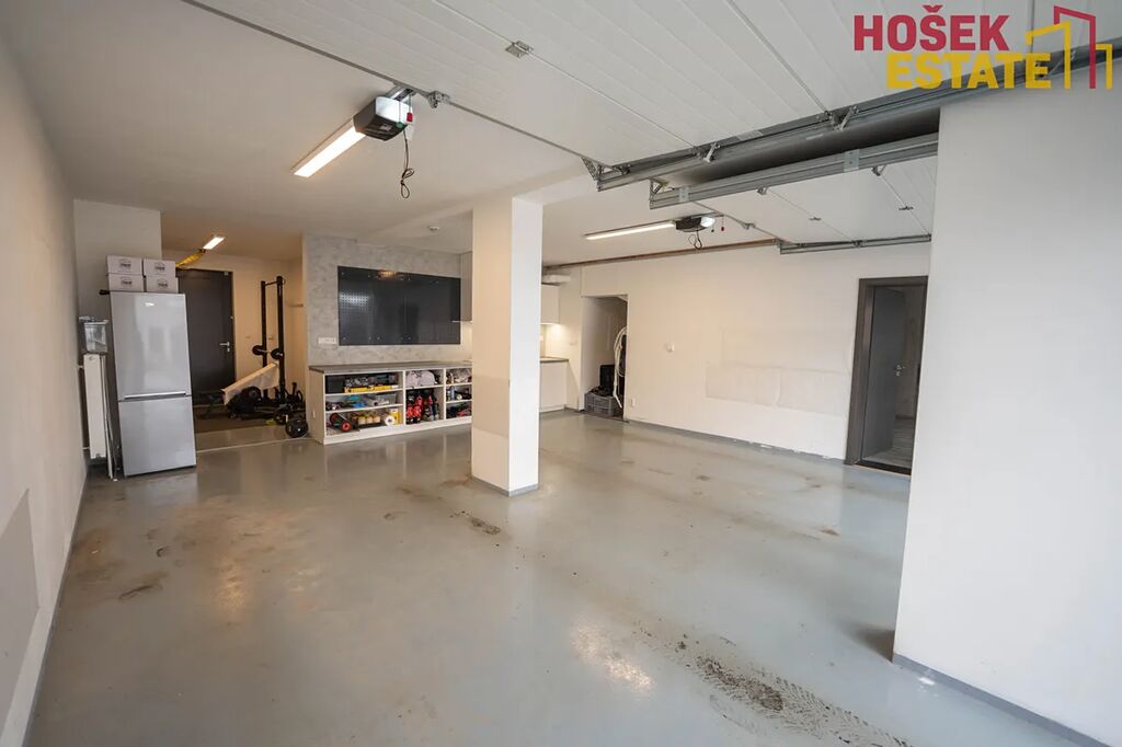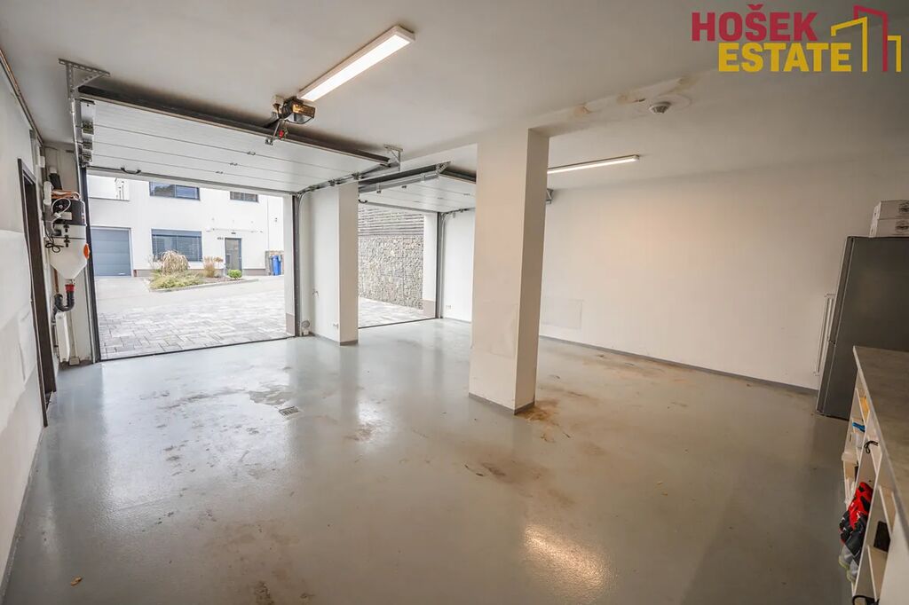 Velkou výhodou je prostorná a praktická garáž na dvě auta. Do garáže je vstup přímo z domu suchou nohou a z ní také vstup přímo na zahradu.