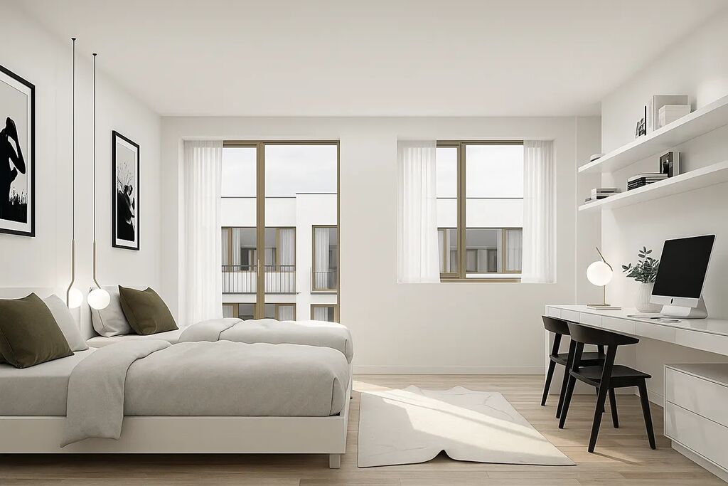 Prostorný a moderní třípokojový byt o ploše přes 76 m2 s orientací na východ se nachází ve čtvrtém, nejvyšším nadzemním podlaží. Součástí kupní ceny je už i nadstandardně vybavená koupelna a klimatizace ve všech obytných místnostech. WC je samostatné. Z každé místnosti se francouzským oknem vstupuje na vlastní balkón (3x6 m2).