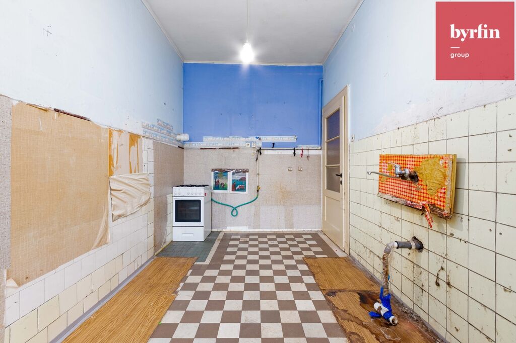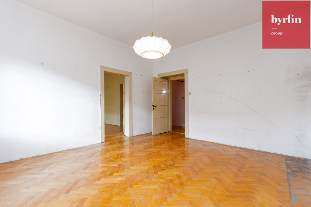 Interiér je v původním stavu, takže rekonstrukci se nevyhnete, ale právě to z něj dělá skvělou příležitost. Můžete si vytvořit bydlení podle svých představ a zachovat přitom kouzlo staré architektury — vysoké stropy, velká okna a prvorepublikový charakter.