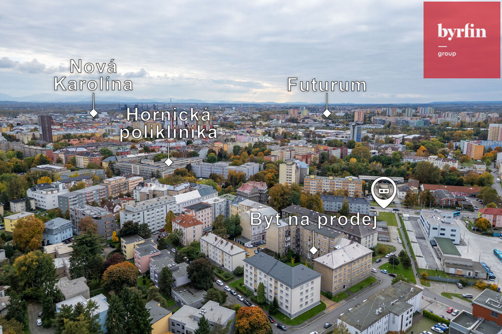 Byt se nachází na Hrušovské ulici v Ostravě – v klidné části s výbornou dostupností do centra i do oblíbených Komenského sadů. Parkování je bez problémů přímo před domem.