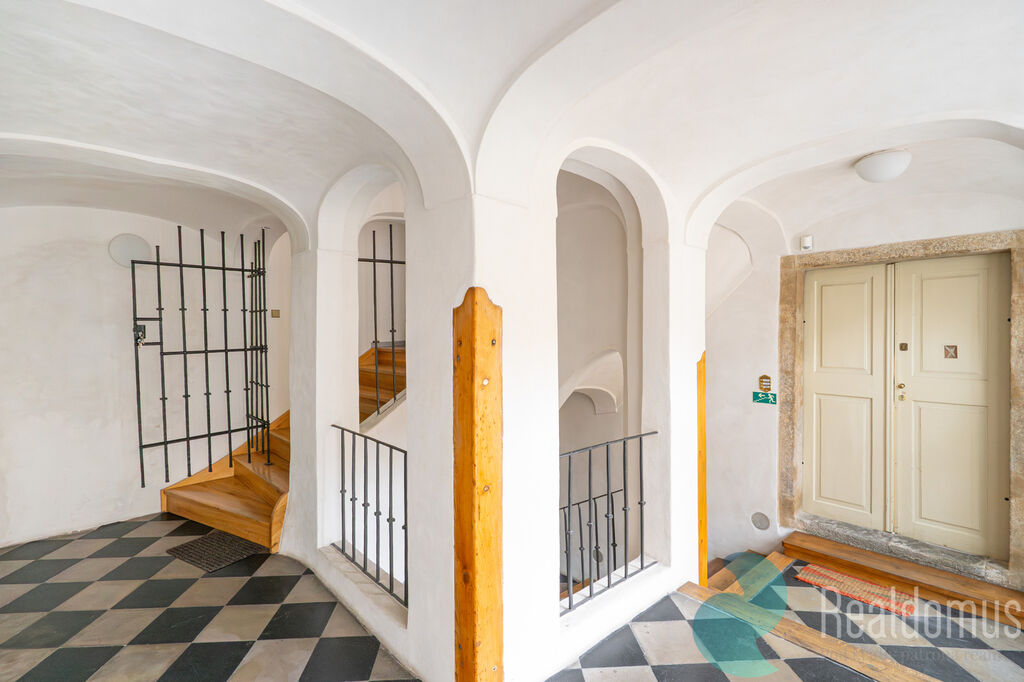Do bytu vás pohodlně vyveze výtah, který zastavuje přímo na podestě před vstupem. Tento detail podtrhuje soukromí i nadstandardní charakter bydlení.