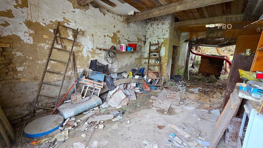 Zahrada je svažitá, prostorná a s velkým potenciálem. Po letech bez údržby je aktuálně zarostlá náletovými dřevinami.