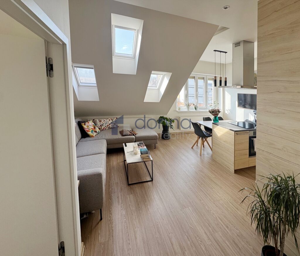 Nabízíme k pronájmu částečně podkrovní byt 2+kk o velikosti 47 m² v atraktivní lokalitě Prahy 4 - Podolí, Jeremenkova ulice, u zastávky Dvorce. Byt je velmi světlý díky velkým oknům a je vybaven ve vysokém standardu: