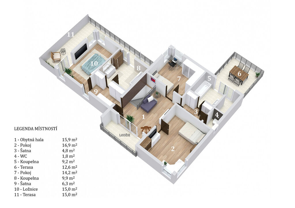 Každý člen vaší rodiny zde najde svůj malý kousek vesmíru. Propojení života s přírodou tady ucítíte všemi smysly. Jezírko se zvukem padající vody, stromy rostoucí do nebe, okouzlující výhledy z každé části domu ve vás vyvolají netradiční proud emocí a klidu.