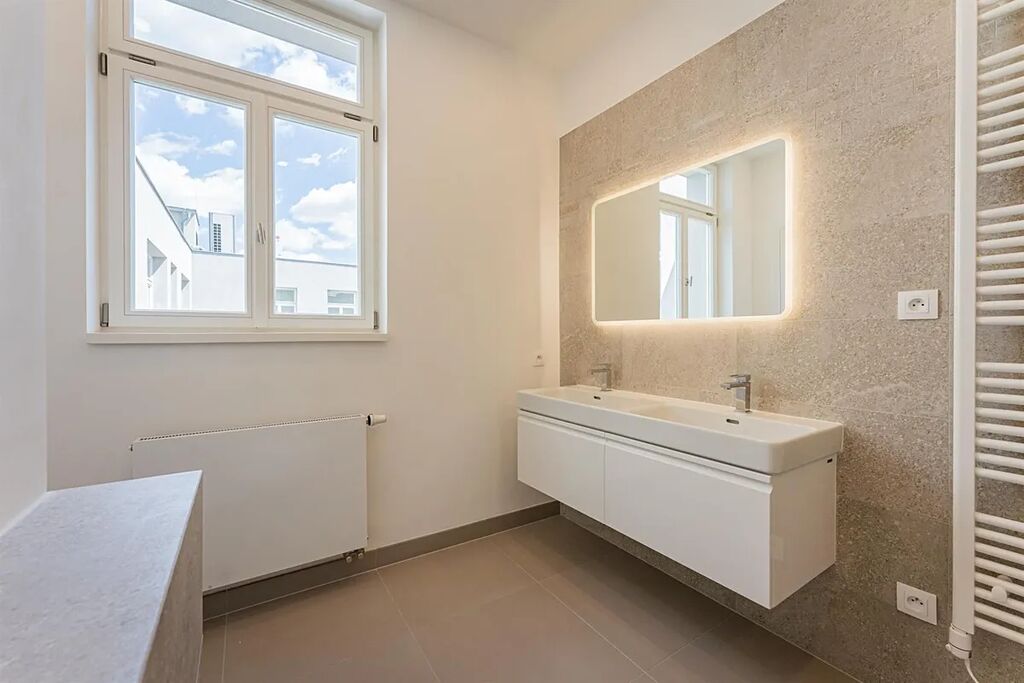 Prostorný byt 3+1 s prostornou terasou 57 m2, která nabízí hezké výhledy a podlahovou plochou 117 m2. Byt je situovaný v posledním 6. patře kompletně zrekonstruovaného domu se zachovalými původními art deco prvky. Výtah přímo do bytu. Dispozice bytu nabízí obývací pokoj, oddělený jídelní prostor, plně vybavenou kuchyň, dvě ložnice, dvě koupelny (jedna s vanou, druhá se sprchovým koutem), komoru, oddělenou toaletu a vstupní halu. Kuchyň je vybavena vestavěnými spotřebiči myčka, mikrovlnka, trouba, indukční varná deska, lednice a mrazák. Kvalitní materiály a provedení, vysoké stropy, podlahy z běleného dubu, dlažba, vytápěné podlahy v koupelnách, alarm, videotelefon, vstup do budovy na čip. Vstup na terasu je možný z obývacího pokoje, kuchyně a všech ložnic. Byt je možno zařídit nábytkem za vyšší nájemné. Výborná dopravní dostupnost pár kroků od stanic metra Národní třída (trasa B) a Můstek (trasy A, B) a zastávek tramvají Vodičkova a Národní třída. Výhodou je také široké spektrum služeb dostupných v blízkém okolí a v nedalekém obchodním centru Quadrio. Poplatky za společné služby a zálohy jsou ve výši 5000,/měsíc na dvě osoby. Spotřeba energií se převádí na nájemce.