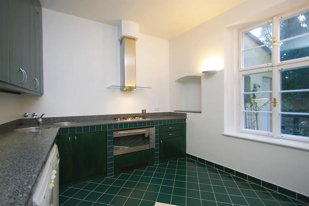 Prostorný nezařízený byt 4+1 o celkové rozloze 184 m2 s vlastní zahradou (143 m2) je situovaný v historickém rekonstruovaném domě s malebným nádvořím a kašnou, na Praze 1 Malé Straně, v ulici Vlašská.