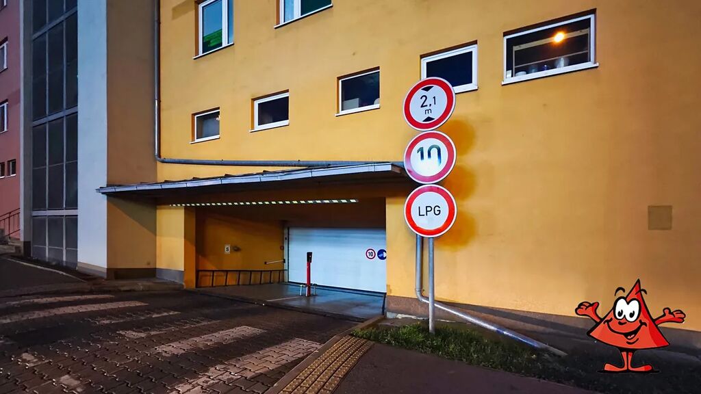 Pronájem nadstandardně vekého garážového stání (prodloužené s možností za autem parkovat vozík nebo motorku) v suterénu bytového domu v Troji na sídlišti Bohnice, v ulici Hnězdenská, přímo u obchodního centra Krakov.