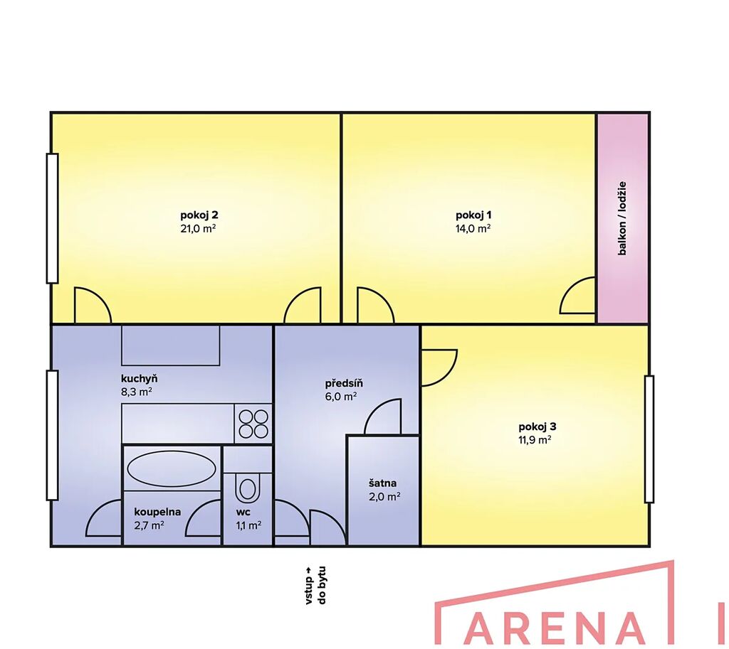 Prostorný byt v klidné lokalitě s perfektní dostupností o velikosti 3+1 79 m² s lodžií, umístěný ve vyhledávané části Brna.