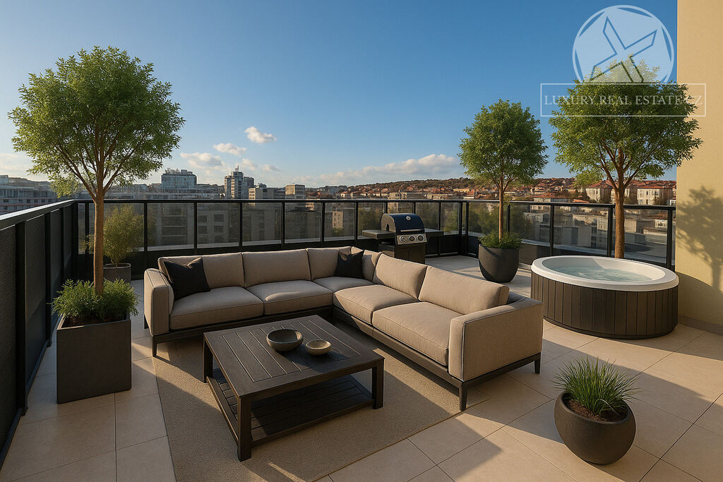 Libí se Vám tato představa? Může se stát realitou - máme zde neopakovatelnou nabídkou bytové jednotky (Penthouse) v dispozici 2+KK (56,5m²) s vlastní panoramatickou terasou (28m²) v posledním patře novostavby developerského projektu THE TRIANGLE, etapa A, který právě dokončujeme (kolaudace do 31.11.2025).