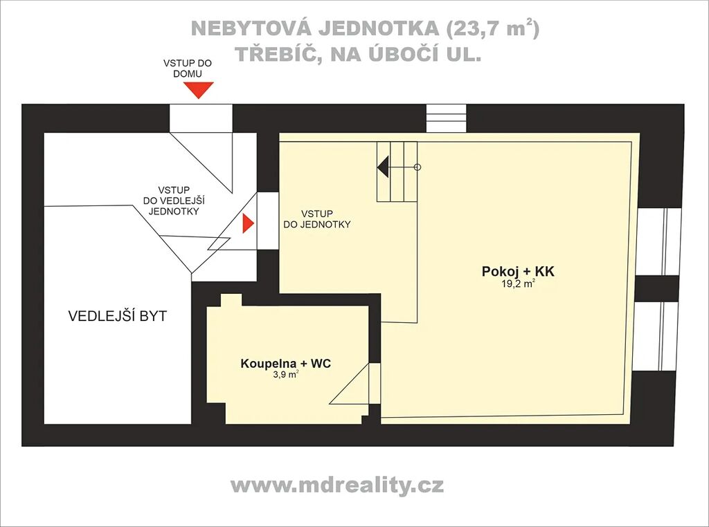 Ve výhradním zastoupení nabízíme k prodeji právě zrekonstruovaný ateliér, který je vhodný i k bydlení a najdete ho v třebíčském Zámostí, ve čtvrti zapsané na seznamu památek UNESCO. Obytná místnost (atelier) s navazující koupelnou navazuje na výškově oddělený kout s kuchyňskou linkou. Ateliér, který je kolaudovaný a v katastru nemovitostí zapsaný jako nebytový prostor, se nachází v menším bytovém domě, ve výše popsané čtvrti. Objekt je napojen na veškeré inženýrské sítě, vytápění zajišťuje plynový kotel. Nabízená nebytová jednotka nabízí zázemí pro umělce, bydlení pro jednotlivce či pár. Zajímavou příležitost skýtá rovněž jako investice. V případě zájmu o koupi, bližší informace či prohlídku, neváhejte písemně kontaktovat makléře. Zajímavá příležitost, doporučujeme!