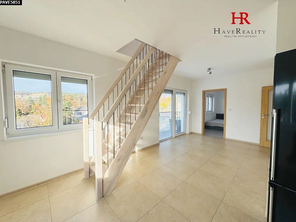 Nabízíme Vám do pronájmu s okamžitou platností částečně zařízený mezonetový byt 4+kk, 80 m2, v Chrástu nad Sázavou č.p. 240 (vlaková zastávka Krhanice), části obce Týnec nad Sázavou. Byt se nachází v zatepleném bytovém domě zkolaudovaném v roce 2018 a je umístěn ve 2. patře (3. NP) bez výtahu. Dispozičně je členěn na: vstupní chodbu, koupelnu s WC, ložnici, obývací pokoj se vstupem na balkon (2,5m2) a kuchyňským koutem vybaveným vestavěnými spotřebiči: myčka nádobí zn. MIELE (45 cm), pečící trouba, indukční varná deska a samostatně stojící lednice s mrazákem. Po schodišti se dostanete do prostoru mezonetu, kde jsou 2 pokoje se střešními okny. Byt je částečně vybaven nábytkem v ložnici: šatní skříň a manželská postel. V koupelně se nachází sprchový kout, závěsné WC, umyvadlo, zrcadlo a topný žebřík. Vytápění v bytě je teplovodní podlahové, zajištěno tepelným čerpadlem vzduch - voda, v podkroví tepelné čerpadlo vzduch – vzduch, sloužící i jako klimatizace. Ohřev TUV vlastním bojlerem, umístěným v koupelně. Okna – plastová, v podkroví střešní, dřevěná. Podlahy – plovoucí podlaha (lamino), dlažba. Schodiště – dřevěné. Měsíční nájemné za byt činí 21.000,- Kč + poplatky ve výši cca 2.500,- Kč (pro 2 osoby žijící v bytě) a spotřeba elektrické energie (cca 1.500,- Kč), kterou si nájemce přihlásí na sebe u dodavatele. Jistota (dříve „kauce“) činí 42.000,- Kč a je vratná po řádném ukončení nájemního vztahu. Provize pro RK ve výši 1 měsíčního nájmu. Vhodné pro nekuřáky bez domácích mazlíčků. Parkování vozu možné u domu nebo v jeho blízkosti. Budova splňuje díky zateplení nejnovější energetické normy a vyhovuje nejpřísnějším požadavkům na úspory energií. PENB – třída B, velmi úsporná budova. Nízké provozní náklady. IS – vodovod, kanalizace, elektřina. Do bytu je zaveden TV signál, internet a domovní telefon. V domě není výtah, sklepní koje ani kolárna. Nedaleko domu naleznete tenisové kurty, restauraci, prodejnu potravin, MŠ, hezkou přírodu, řeku Sázavu. ZŠ se nachází v Krhanicích vzdálených 1,5 km. Veškerá občanská vybavenost v 5 km vzdáleném Týnci nad Sázavou. Dobré spojení do Prahy, zastávka bus – PID, nebo vlak. Vzdálenost do Benešova je cca 10 km a do Prahy cca 30 km. Pro sjednání nezávazné prohlídky nás prosím kontaktujte na uvedeném telefonním čísle.
