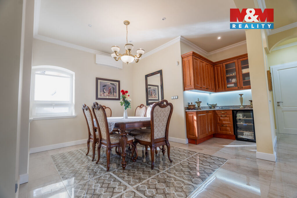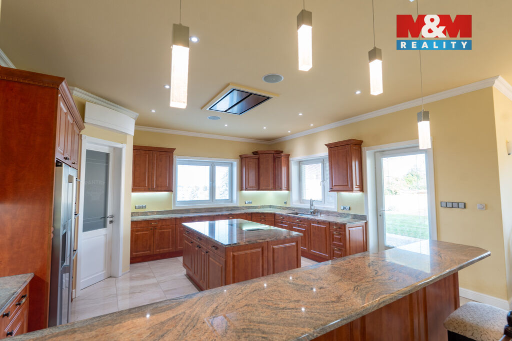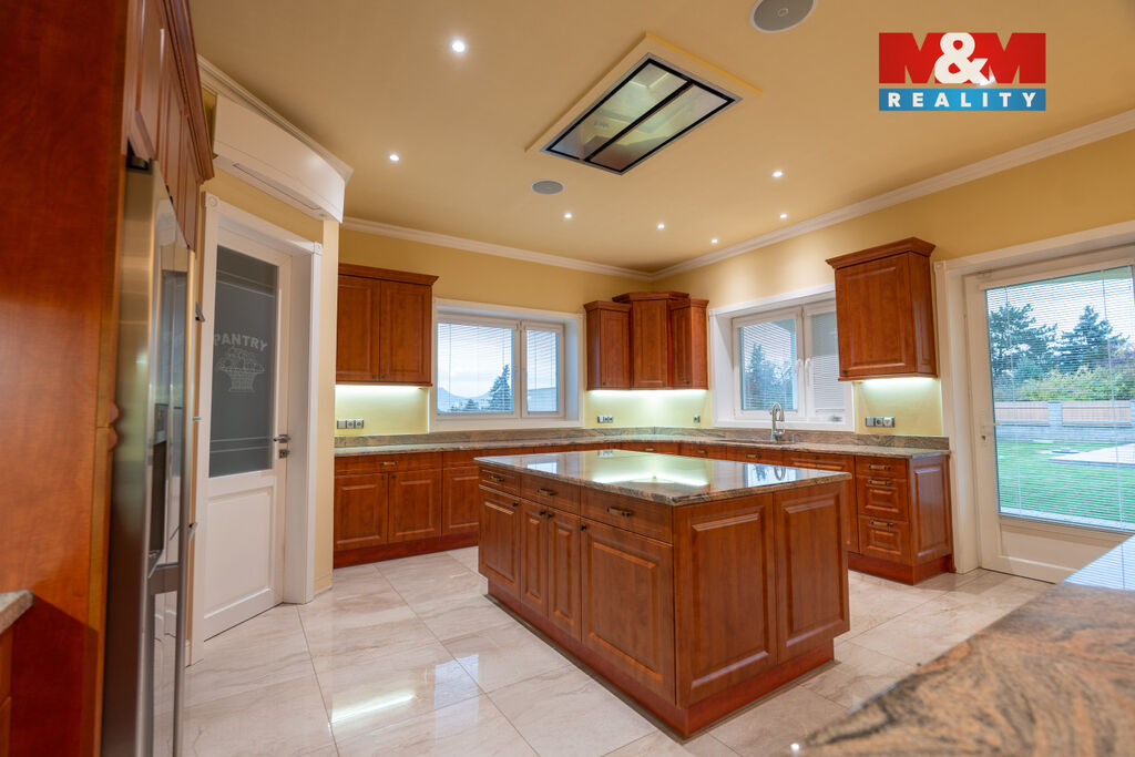 Hledáte dům, který spojuje eleganci, pohodlí a výjimečné místo k životu pouze 40 minut jízdy od Prahy? Tento jedinečný rodinný dům v americkém stylu o dispozici 6+KK s užitnou plochou 429 m² stojí na pozemku o rozloze 1 694 m² v jedné z nejatraktivnější části Loun s dechberoucím výhledem na České středohoří. Dům vás osloví velkorysým prostorem, nadčasovým designem a důrazem na detail. Nabízí tři pokoje pro hosty, každý s vlastní šatnou a koupelnou, obývací pokoj s barem a jídelním koutem, prostornou kuchyň se spíží, pracovnu, samostatné WC a hlavní ložnici s luxusní koupelnou. Na zahradě se můžete vykoupat v bazénu se slanou vodou. Součástí domu jsou dvě garáže, podlahové vytápění, klimatizace, centrální ozvučení a kamerový systém. Přijďte se přesvědčit o výjimečnosti tohoto domu a domluvte si prohlídku, během níž vám představíme vše, co tento domov nabízí.