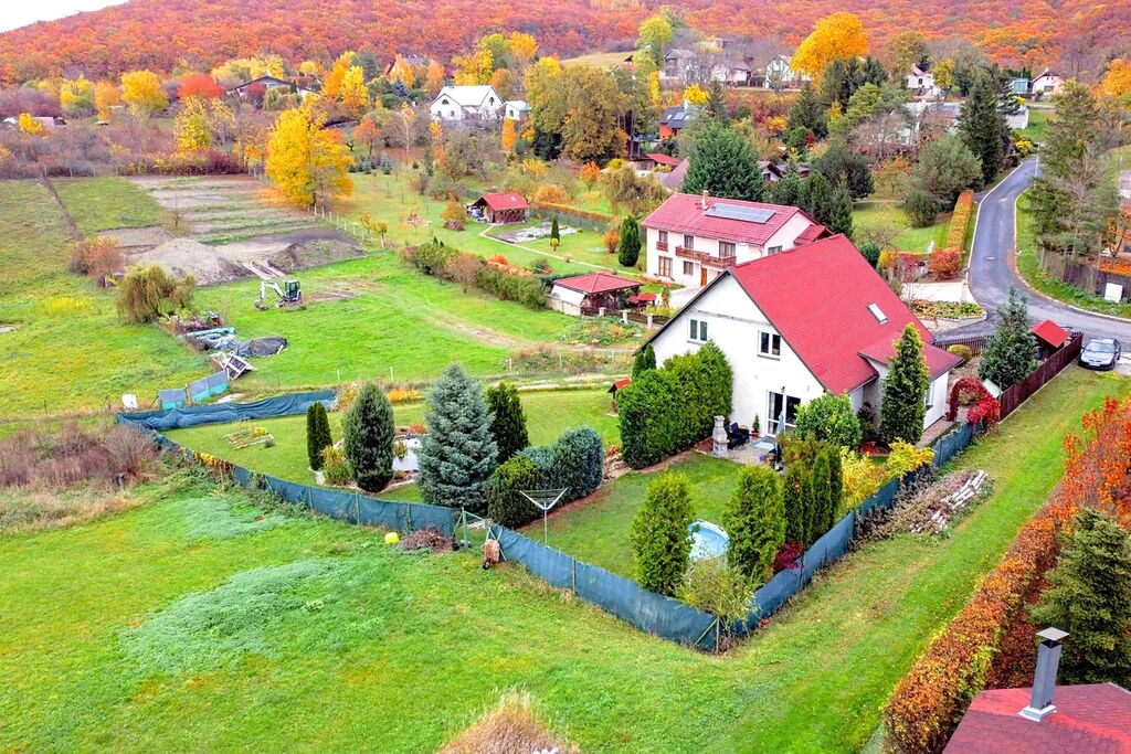 Dům nabízí podlahovou plochu 252 m², stojí na pozemku o velikosti 1 091 m² a díky energetické třídě B vás potěší velmi nízkými provozními náklady. V obývacím pokoji vás zahřeje krb na dřevo, k odpočinku láká velká terasa a kolem domu se rozprostírá zahrada plná zeleně a vzrostlých stromů, která poskytuje naprosté soukromí.