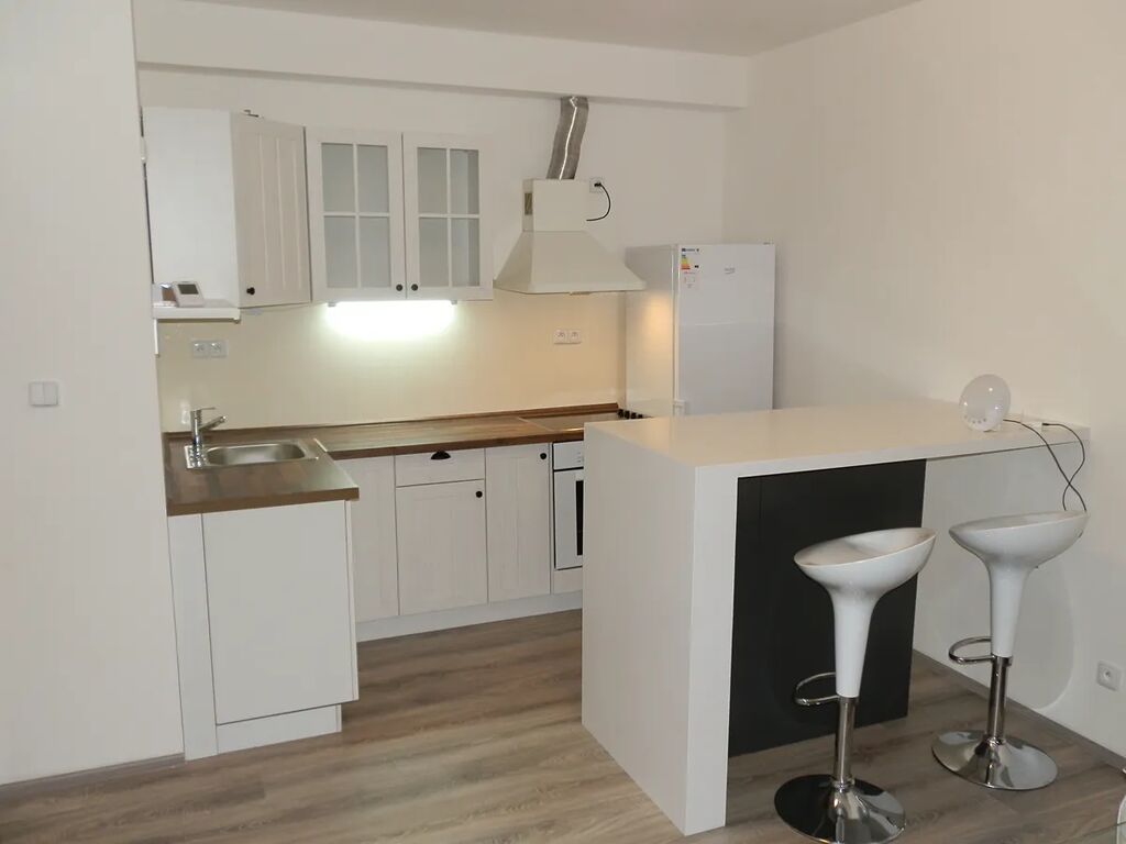 Velmi klidné místo s výhledem do dvora, lokalita poblíž Městského divadla, vynikající stav bytu i domu.