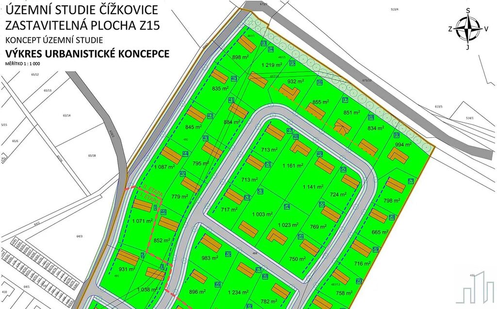 Nabízíme k prodeji pozemek k výstavbě rodinného domu v obci Čížkovice. Pozemek o rozloze 2480 m2 je dle přiložené urbanistické studie připraven k výstavbě domu. Nachází se dle územního plánu v zastavitelném území - zóna Z15. Na kraji pozemku vede vysoké napětí, které bude časem přeloženo nebo uloženo do země. Do té doby je potřeba počítat s ochranným pásmem.
