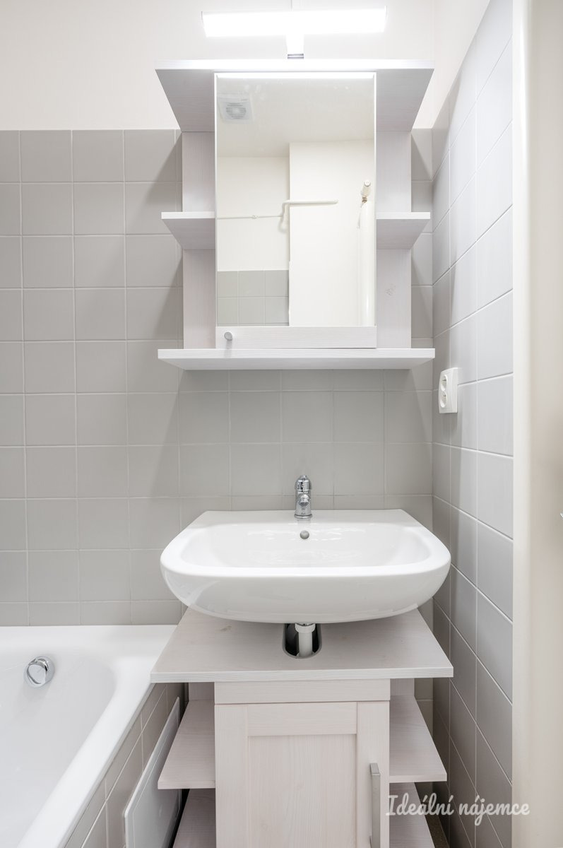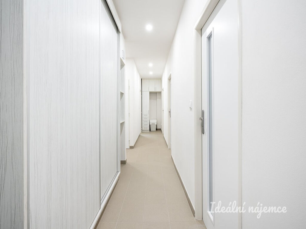 Byt se nabízí částečně vybavený. Kuchyně disponuje myčkou, troubou, varnou deskou, mikrovlnnou troubou a digestoří. Obývací část je zařízena pohovkou a zbytek pokoje je nevybavený. Ostatní pokoje jsou také nevybavené. V koupelně je vana. Toaleta je umístěna samostatně. V předsíni najdeme velkou šatní skříň.
