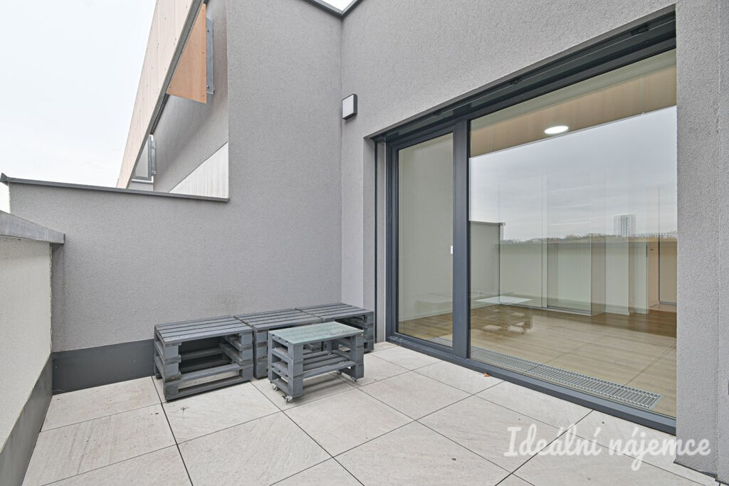 K dlouhodobému podnájmu nabízíme krásný a světlý byt o dispozici 2+kk s výměrou 55 m² v oblíbené rezidenci Ponavia v Brně. Byt se nachází v nejvyšším patře domu a nabízí nádherný výhled na okolí i prostornou terasu ideální pro odpočinek. K bytu náleží parkovací stání v garáži, za kterým se nachází prostorný sklep, a dále také komora přímo na patře.