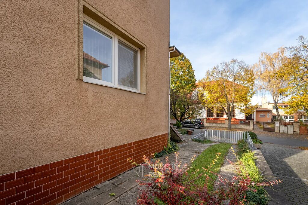 Součástí domu je udržovaná zahrada orientovaná na jih, která poskytuje dostatek soukromí a prostoru pro odpočinek či rodinné posezení. Pro úsporu vody je k dispozici podzemní zásobník na dešťovou vodu – praktické a ekologické řešení pro zavlažování zahrady.