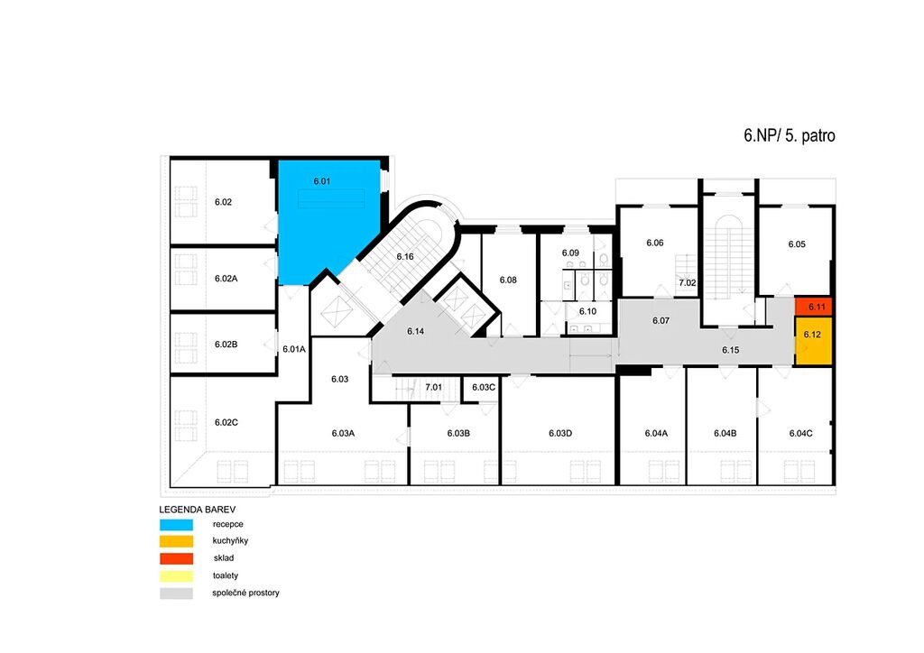 5. patro, kancelář 18 m2 (plánek 6.NP, kancelář 6.08)