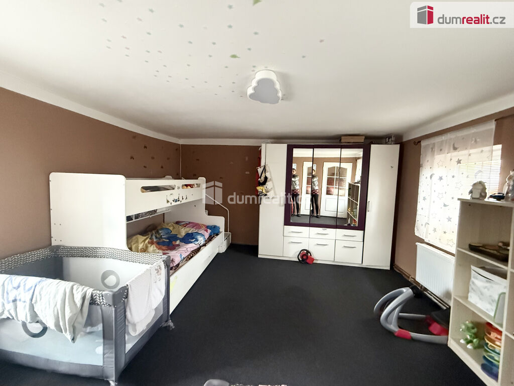 V prvním patře jsou dva samostatné pokoje, vhodné jako ložnice, dětský pokoj nebo pracovna. Dům nabízí dostatek prostoru pro pohodlné bydlení i pro rodinu s dětmi.