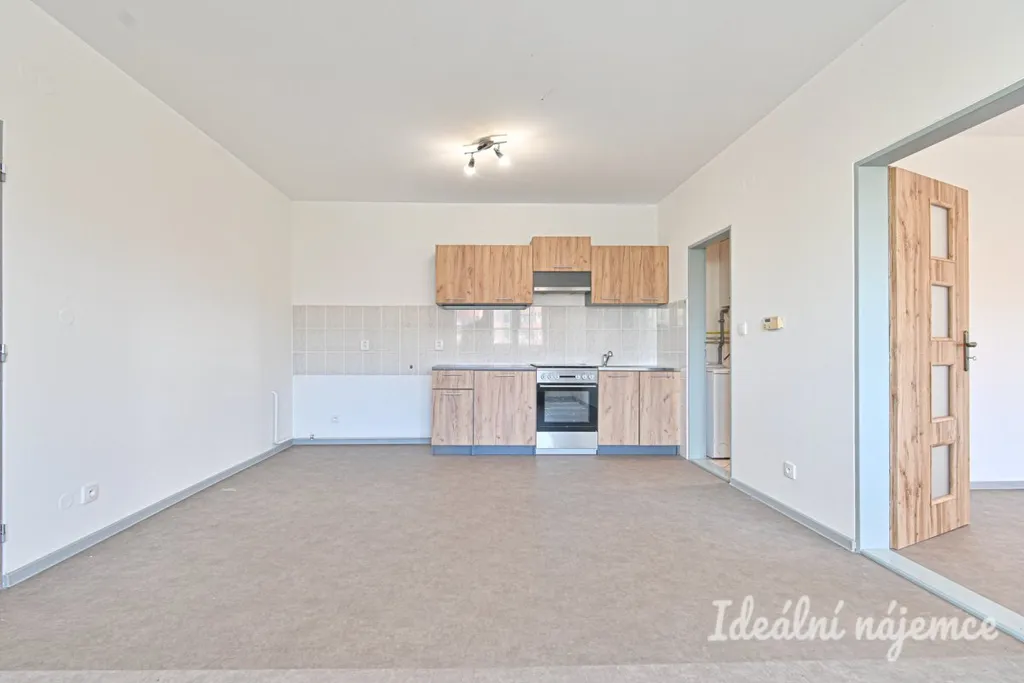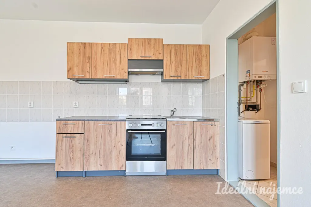 Kuchyně je zařízena kuchyňskou linkou vybavenou spotřebiči jako varná deska, trouba a digestoř, zbytek místnosti je bez vybavení a nabízí prostor jak pro jídelní kout, tak pro obývací část. Ložnice je taktéž bez vybavení.