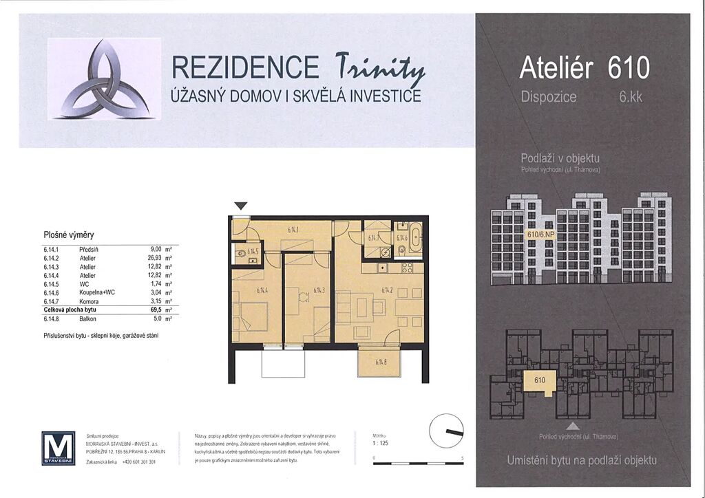 Nabízím k pronájmu prostorný ateliér 3+kk o výměře 70 m² v nadstandardní lokalitě – ulice U Mlýnského kanálu, Praha 8 – Karlín. Byt se nachází v 6. NP rezidenčního domu a disponuje balkonem s příjemným výhledem do klidného vnitrobloku.