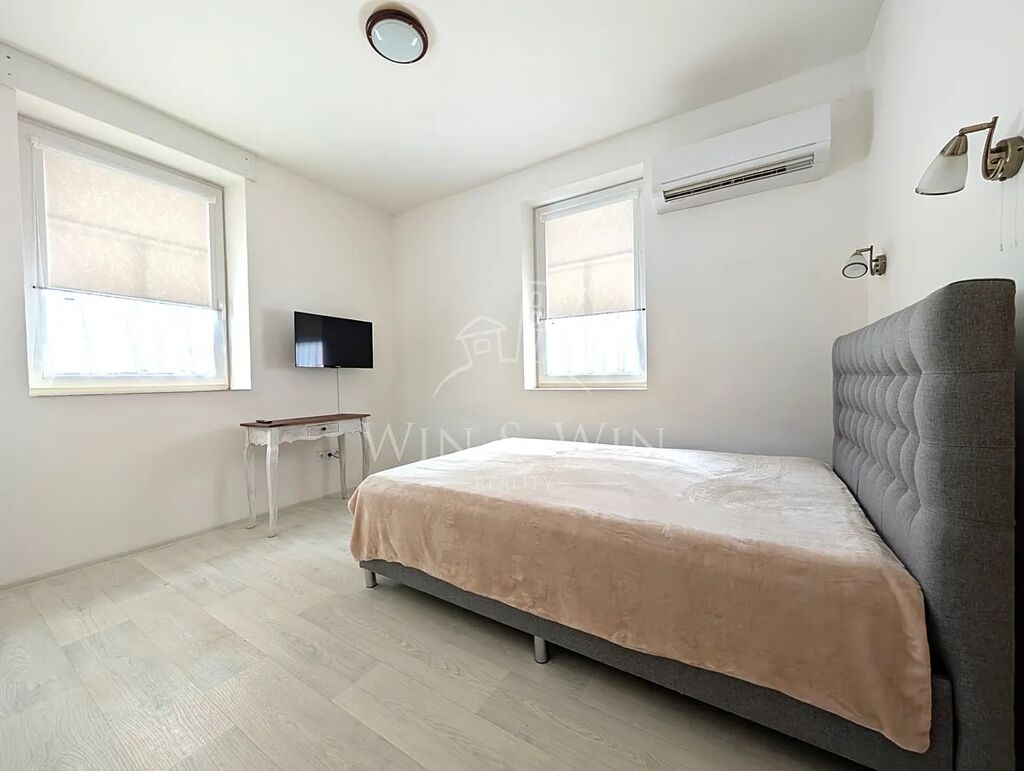 • Světlo a prostor: Velké francouzské okno, které slouží jako východ na soukromý pozemek, kde je možné posedět a relaxovat.