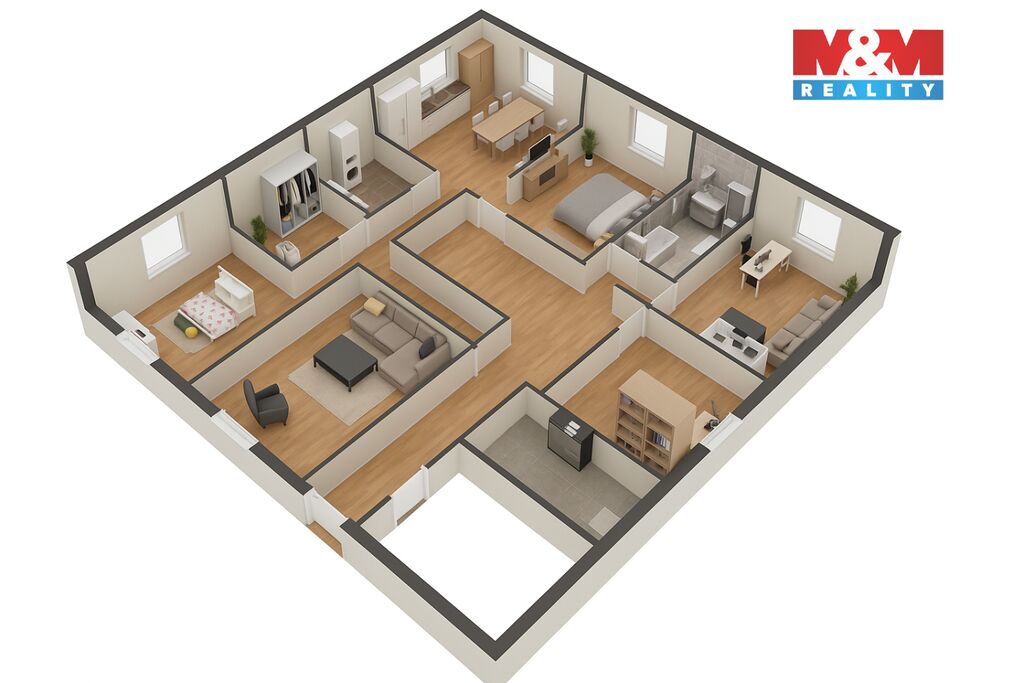 Hledáte velkorysé bydlení, kde má každý svůj prostor byt 4+1 o velikosti 186 m², pak vás tento byt nadchne! Byt o rozloze 186 m² nabízí promyšlenou dispozici s důrazem na pohodlí a funkčnost. Dominantou je světlý obývací pokoj s kuchyní a jídelnou, který tvoří srdce celého bytu – ideální místo pro rodinná setkání. Na byt navazuje ložnice s prostornou šatnou, dětský pokoj, pracovna i technická místnost, která dodává komfort při každodenním provozu. Samozřejmostí je velká prostorná koupelna a praktická předsíň s dostatkem úložného prostoru. Interiér je řešen v moderním stylu s důrazem na světlo a vzdušnost. Celý byt působí velmi útulně a nabízí příjemné propojení otevřeného prostoru s klidovými zónami. Tento byt je ideální volbou pro rodinu, která hledá komfort, dostatek místa a kvalitní zázemí. Veškerá občanská vybavenost je v dosahu do Litoměřic 7 km a na nájezd na dálnici jste během 10 minut. O prohlídku si zavolejte ještě dnes! Hypoteční servis vám zařídí naše finanční poradkyně.