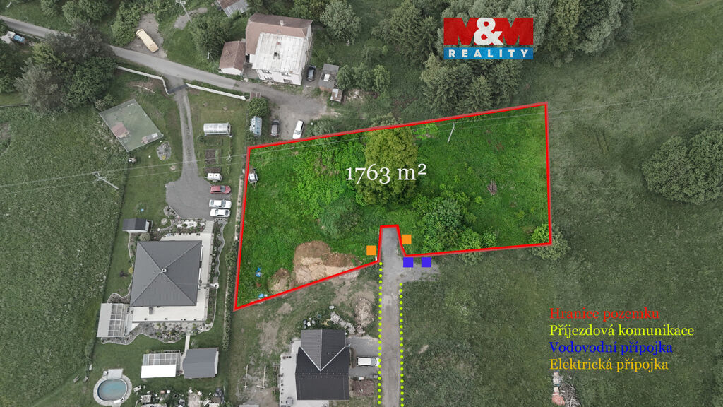 Inženýrské sítě: elektřina a veřejný vodovod na hranici pozemku. Odpady lze řešit pomocí ČOV. Příjezd je z obecní zpevněné komunikace a dále po vlastní příjezdové cestě.