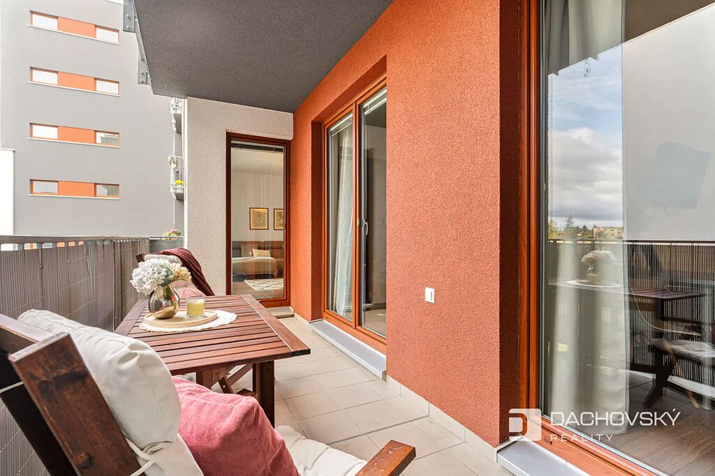 K bytu dále náleží prostorná lodžie s výhledem do klidného vnitrobloku a velký sklep umístěný přímo u garážového stání, což je ideální pro pohodlnou manipulaci s věcmi. Vytápění i ohřev vody jsou řešeny dálkově. Energetická náročnost budovy spadá do kategorie B – velmi úsporná. SVJ je dobře fungující a bezproblémové.