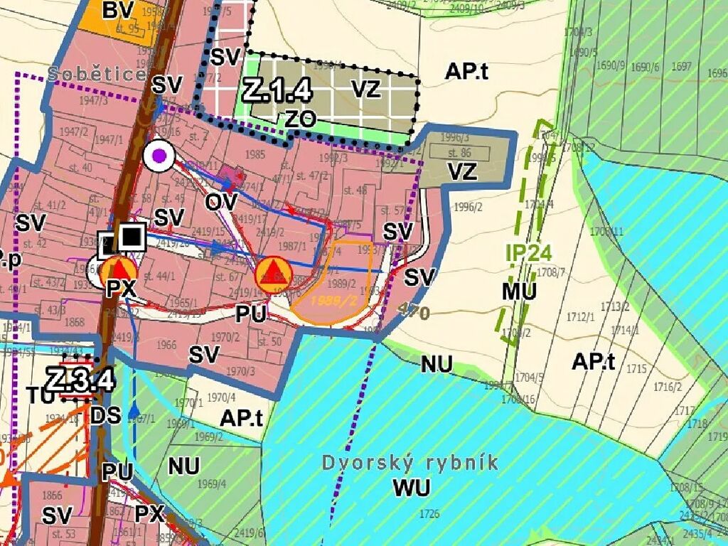 smíšené obytné venkovské. K pozemku je přístup z komunikace. Vesnice se rozkládá v mírně