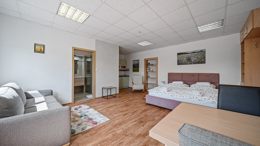 • 1 apartmán s kuchyňkou, koupelnou a Wi-Fi