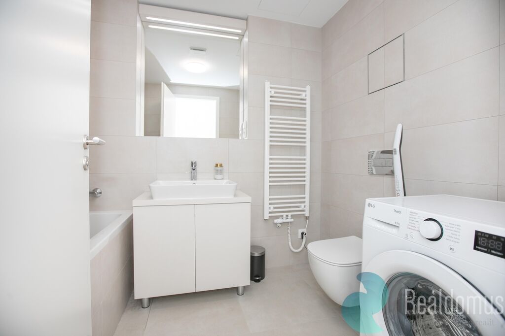 Nabízíme k pronájmu byt 2+kk o rozloze 57 m², který se nachází v novostavbě. Byt leží v 6. patře z celkem 12 pater s výtahem. Má prostornou terasu s pěkným výhledem. Nemovitost je částečně vybavená. Koupelna s vanou i pračkou. V předsíni vestavěné skříně. V ložnici je manželská postel a vestavné skříně. Kuchyňská linka, lednice, sedačka a televize.